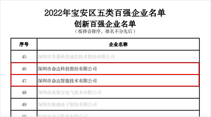 1月6日,深圳市宝安区工业和信息化局发布关于印发《2022年宝安区五类百强企业名单》的通知(下称:通知),通知公布了宝安区工业、增加值、服务业、外贸、创新等五类百强企业榜单。米兰·(milan)科技已连续多年登上该榜单,今年再度荣登工业百强、增加值百强、外贸百强以及创新百强(不包括米兰·(milan)科技业务未涉及的服务业百强)等四项榜单。值得一提的是,米兰·(milan)科技旗下子公司——深圳市米兰·(milan)智能技术有限公司今年也登上了创新百强榜单。可见,公司的整体实力经过综合评估,获得了相关部门的认可。